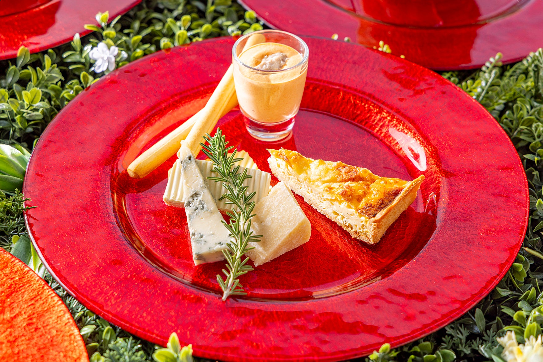 3種のチーズタルト/チキンと野菜のパテ ジェノベーゼソース/ ツナと熟成人参のムース/牛タンポテトサラダ マスタード風味/本日のアンティパスト/グリッシーニ/野菜のバーニャカウダ6種 バーニャソース/サラダバーほか