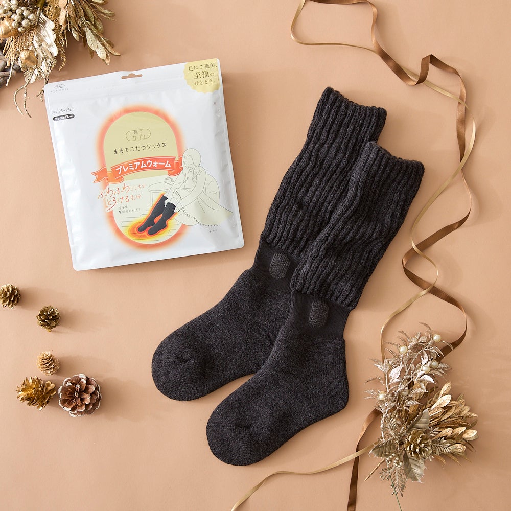 従来のタイプより厚手仕様であたたかく、贅沢起毛仕立てのふんわりとろけるようにやわらかい肌触りの靴下。
