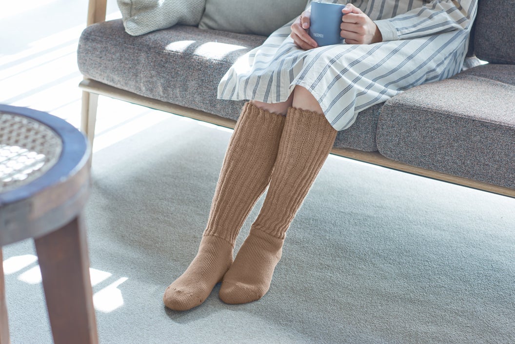 魔法びんの保温効果から着想を得た靴下。毛足の長い極起毛が足先の体温をキャッチして保温します。