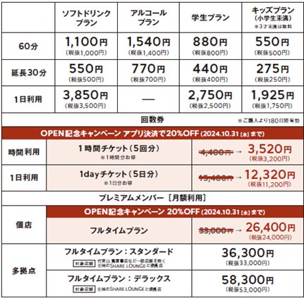 ■ SHARE LOUNGE 柏髙島屋ステーションモール 料金表
