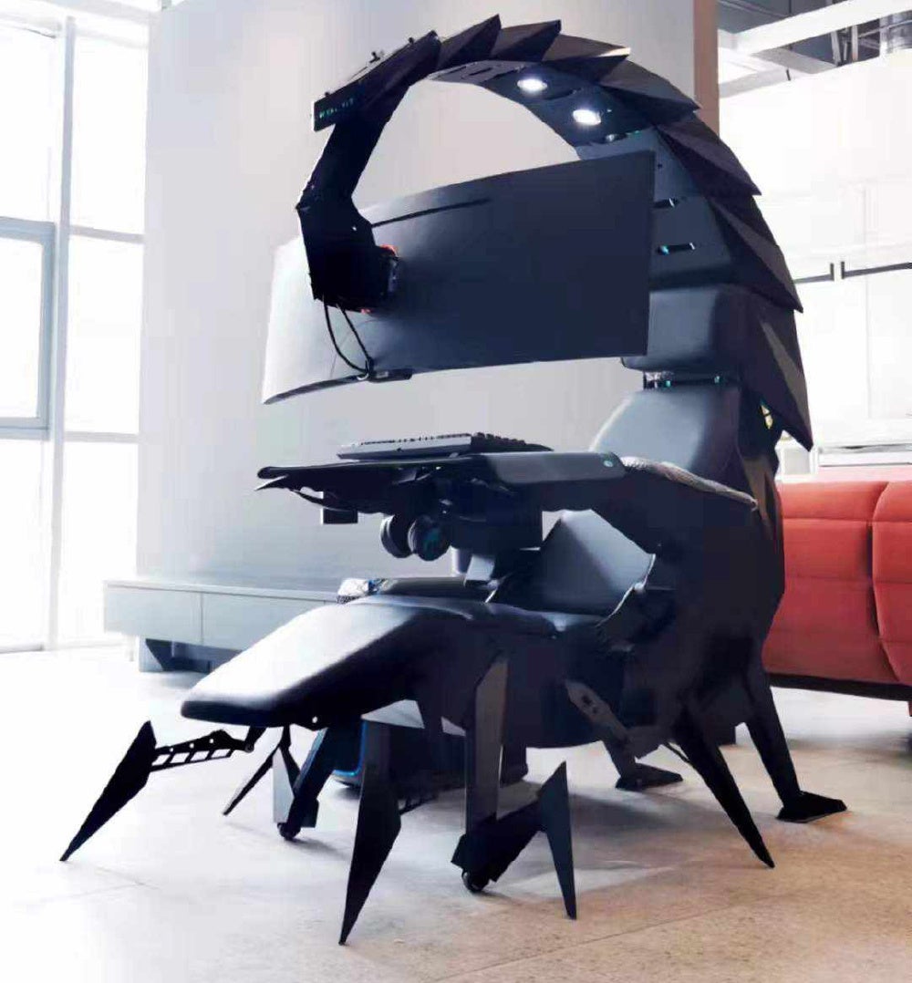 - 近未来的なサソリ型チェア、フラットポジションまで快適リクライニング