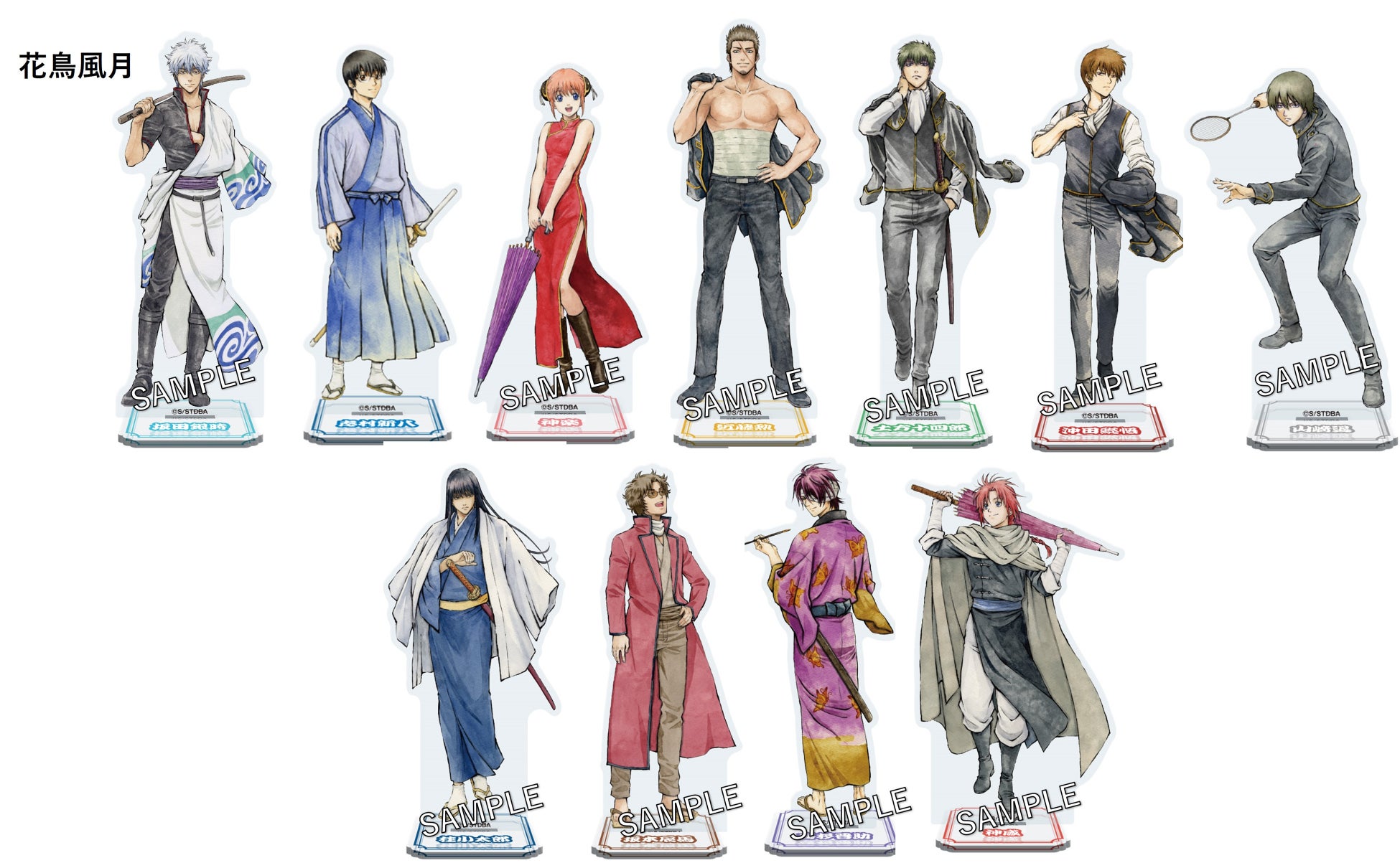 過去イラスト「松下村塾・浪士組編」と「花鳥風月」を使用したマットアクリルスタンドです。