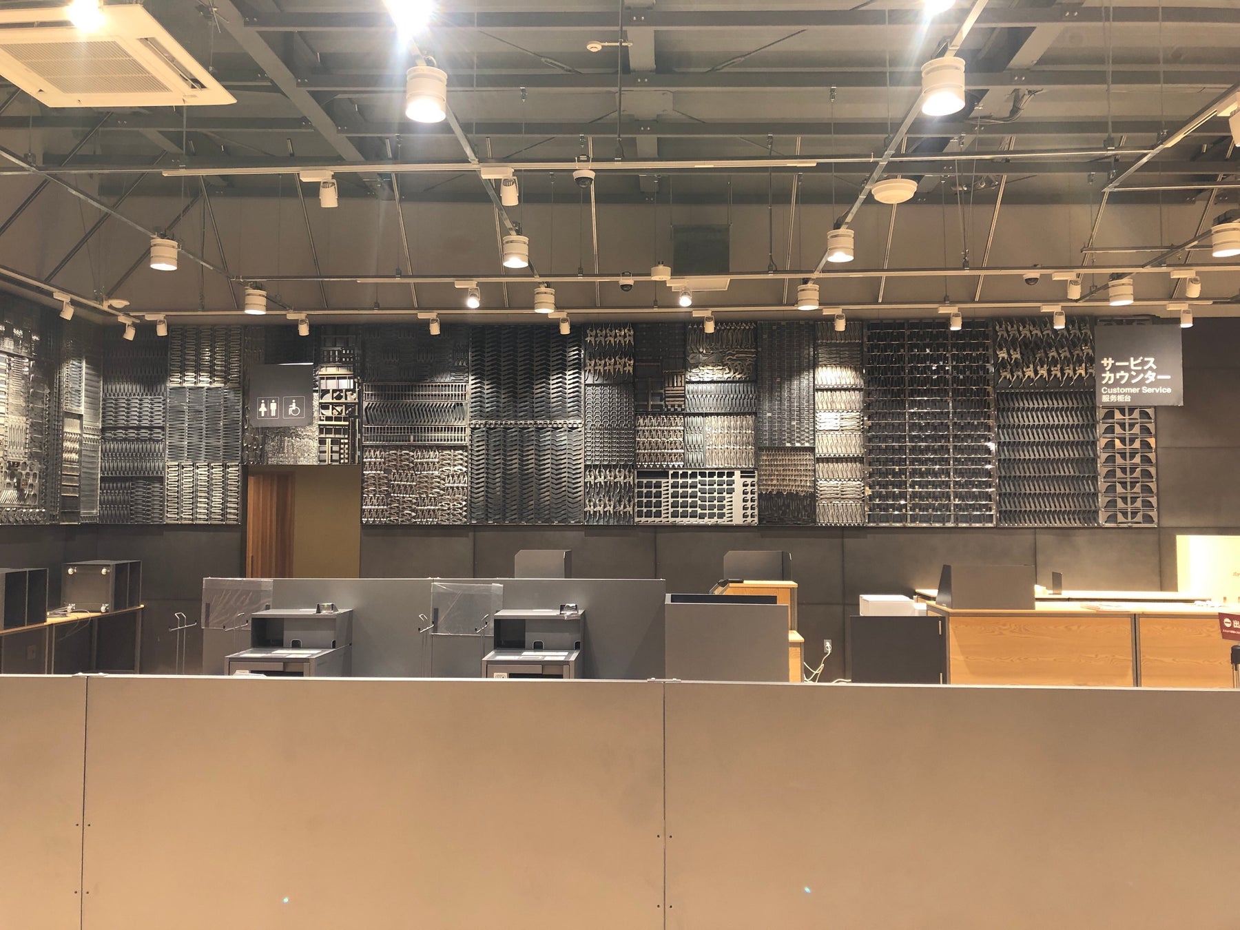燕・三条地域の主要産業である金属加工に関するものづくりの歴史と、高い技術力や作り手の想いをより身近に感じていただけるよう、地元の42企業のご協力のもと、生産工程で出る金属板など廃材を店舗内装に活用しました。また、ご協力いただいた加工業者・工場の所在地を記した「ものづくりMAP」を制作し、店内に掲出しています。これからもこの地域の魅力を学び、お客様と作り手の皆様をつなぐ様々な活動をしていく予定です。