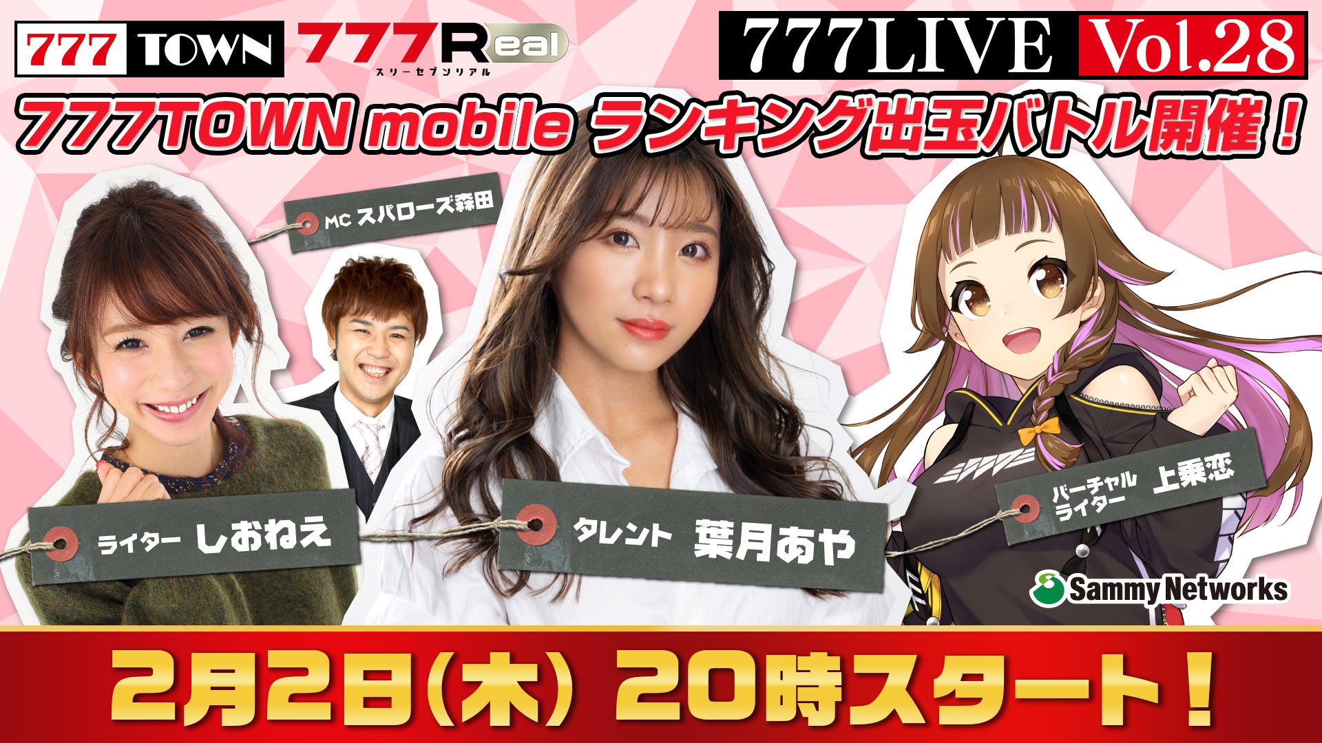 株式会社サミーネットワークスは、ぱちんこ・パチスロがパソコン、スマホで打てる「777TOWN(スリーセブンタウン)」、無料で遊んで豪華景品がもらえるスマホ向けサービス「777Real(スリーセブンリアル)」の生放送を、2023年2月2日(木)20時から配信いたします。
