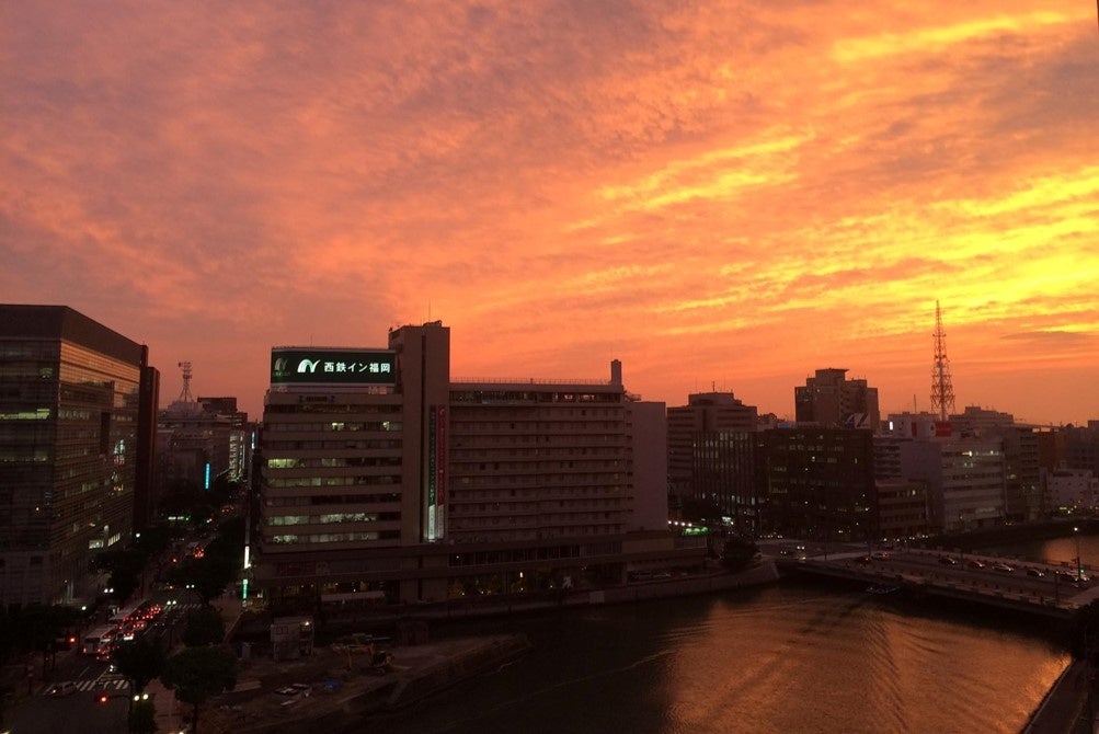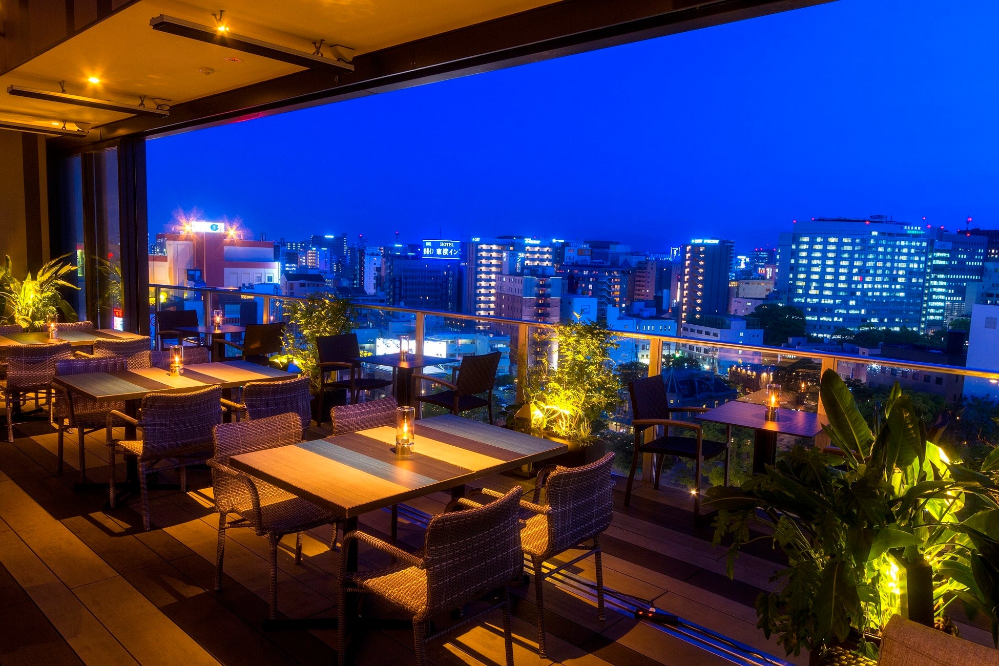ビル最上階のテラスからは、夕景~夜景まで、中州の美しい風景を望むことができます。