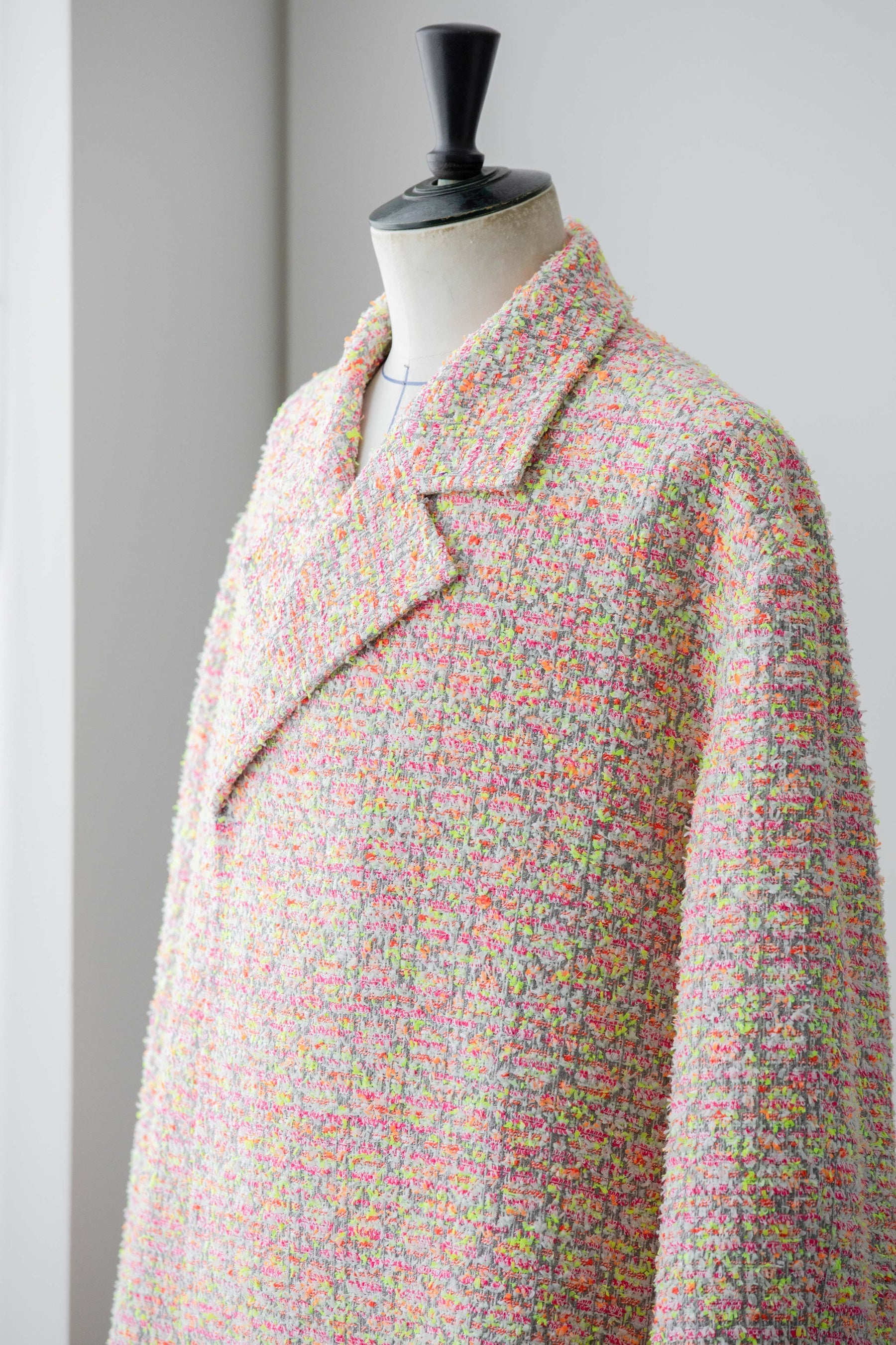 エレガンスと機能性のバランスを保ちながら、キム・ジョーンズによってデザインされた2024年サマー メンズ コレクションでは、象徴的な「カナージュ」によってツイードが昇華されたさまざまなアイテムが登場します。この魅力的なグラフィックモチーフは、卓越したクチュール メゾンによるサヴォワールフェールの結晶であり、ツイードはディオールのコレクションを通して使用されてきた、ディオールにとって大切なファブリックです。職人の限りなく精緻な手仕事により、ツイルは「カナージュ」のグラフィックラインによって卓越したジャカードへと変貌を遂げました。ウールやコットンの糸をふんだんに使い、さまざまな刺繍を施したこの素材は、メゾンが大切にしている「アート オブ ディテール」を反映し、より一層引き立てています。ジャケット、ブレザー、パンツ、そしてシルバーとネイビーの2色から選べる「サドル」ツインといったバッグも、重なり合うテクスチャーによって装飾されています。ツイード「カナージュ」を使用した新作アイテムは、全国のディオール ブティックおよび公式オンライン ブティックでご覧いただけます。