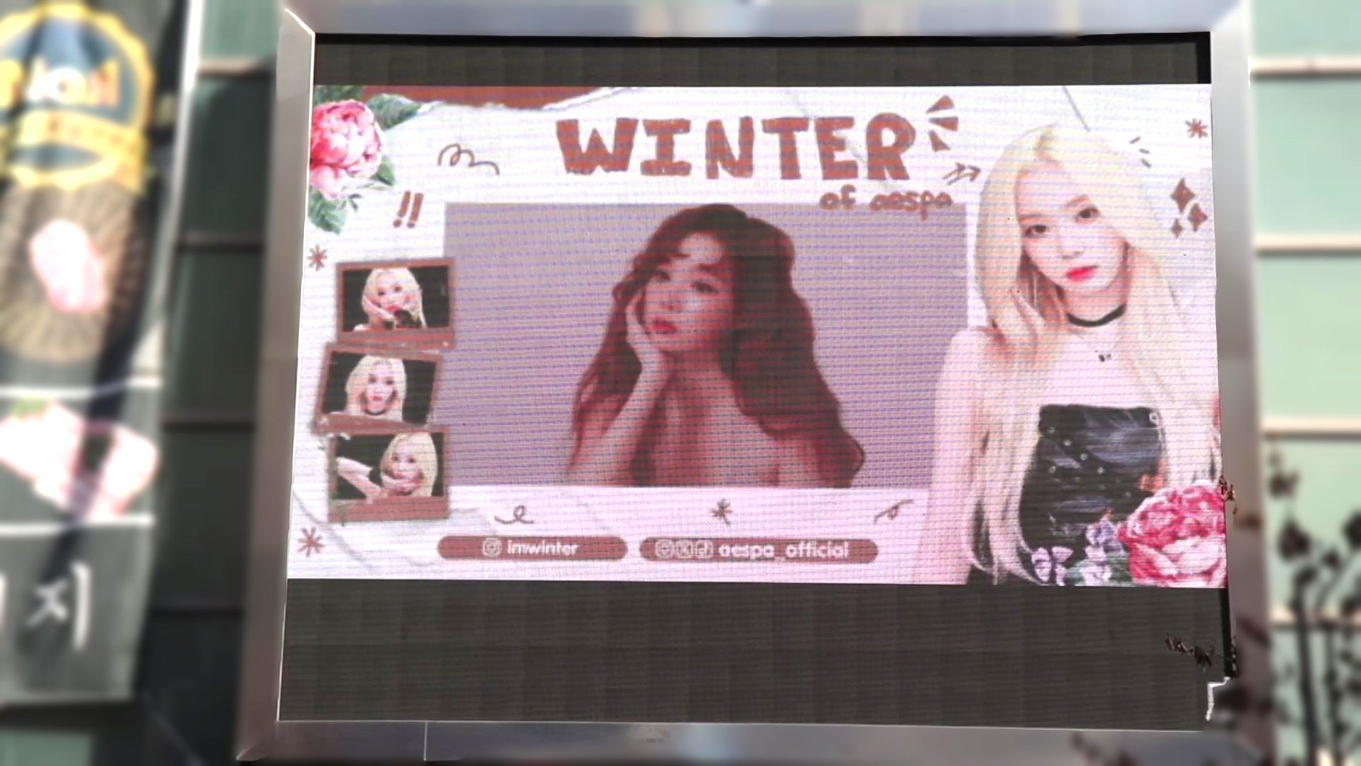 2024年2月12日(月)から2月18日(日)までの期間で開催した、「[K-STAR BOARD投票] 最もかわいいポピポチャレンジアイドルは?」の投票において1位に選ばれたaespaのWINTERさんの応援広告が、新大久保のK-PLAZA 1号館の屋外ビジョンで上映されております。