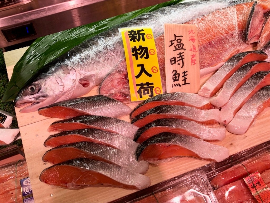 シロサケのうち、秋に産卵するため川に帰郷する秋鮭に比べ、成長途上の若い魚で海を回遊中の脂のりがよい、4月中旬から6月末に捕れるものを「時鮭」「時しらず」と呼びます。