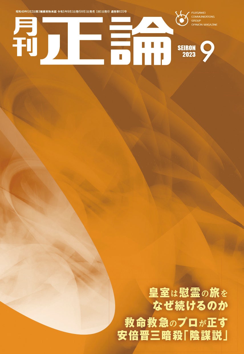 産経新聞社は、日本の針路を考える論壇誌、月刊「正論」の2023年9月号を8月1日(火)に発売します。特集は「当世海外事情」「中国の懐柔」「毅然とせよ」など5本立て。このほか鼎談(ていだん)「皇室は慰霊の旅をなぜ続けるのか」や、外傷外科医として救命救急の現場を数多く経験してきた松本尚衆院議員が、安倍晋三元首相暗殺事件をめぐって流布されている言説をプロの立場で検証するなど、読み応えのある内容となっています。