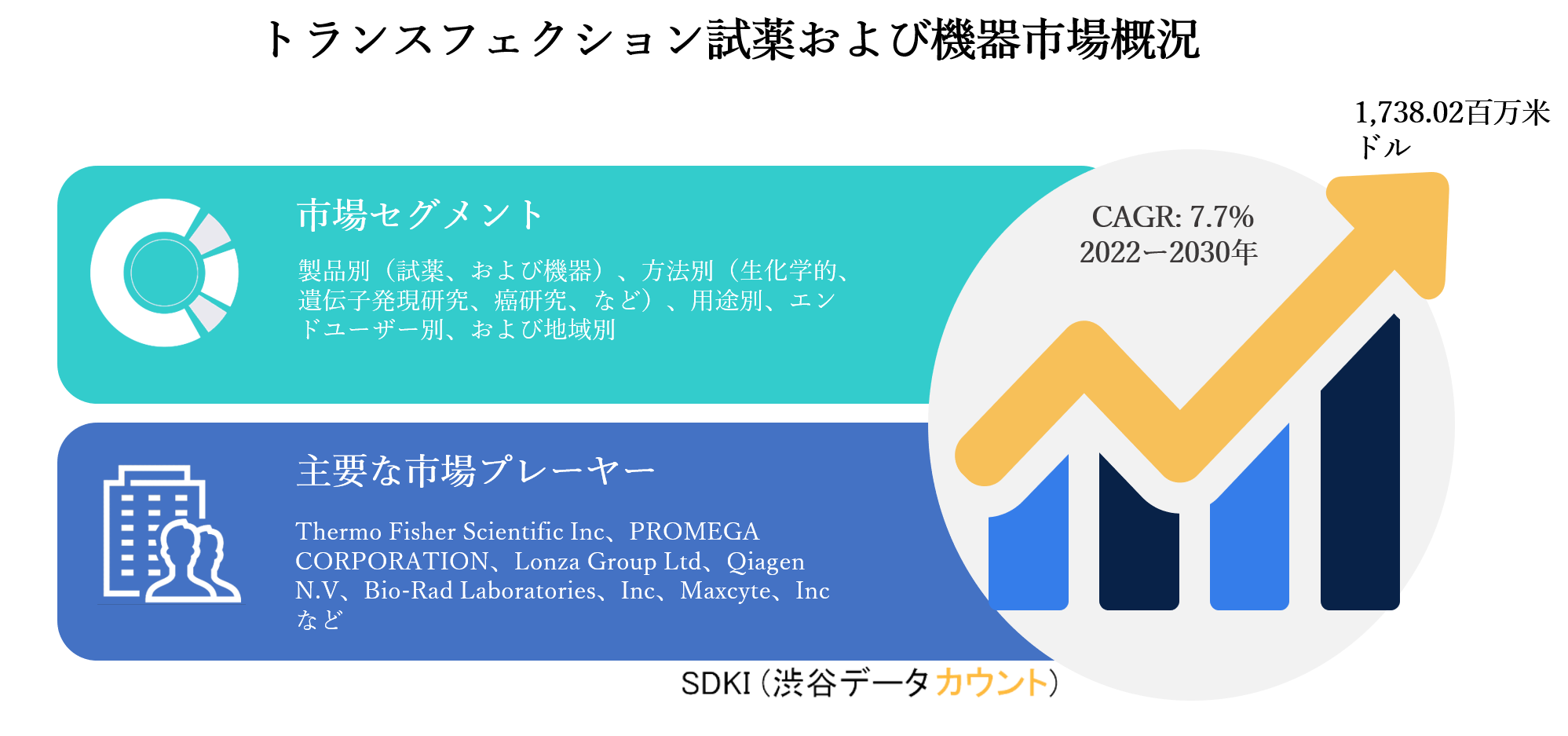 SDKI Inc.は、「トランスフェクション試薬および機器市場ー世界予測2022ー2030年」新レポートを 2021年12月15日に発刊しました。この調査には、トランスフェクション試薬および機器市場の成長に必要な統計的および分析的アプローチが含まれています。レポートで提供される主要な産業の洞察は、市場の既存のシナリオに関する読者に市場の概要についてのより良いアイデアを提供します。さらに、レポートには、市場の成長に関連する現在および将来の市場動向に関する詳細な議論が含まれています。