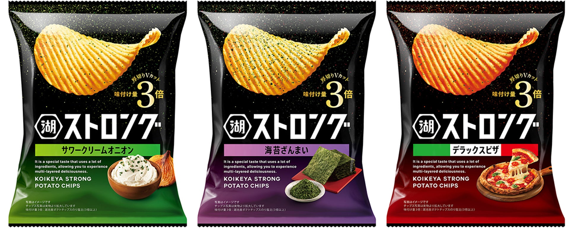 株式会社湖池屋(社長:佐藤章)は、濃厚な味わいと食べごたえでご好評いただいている「湖池屋ストロング」ブランドをフルリニューアルし、「湖池屋ストロング 海苔ざんまい」「湖池屋ストロング サワークリームオニオン」「湖池屋ストロング デラックスピザ」を、2025年3月24日(月)に全国・全チャネルで発売します。