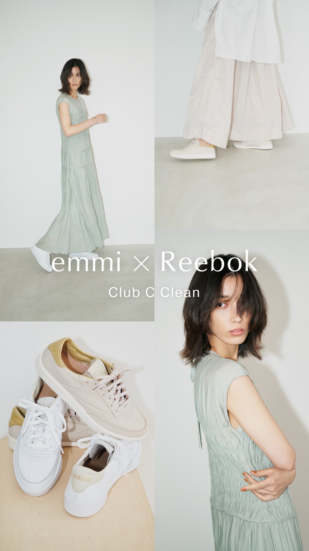 【emmi(エミ)】Reebok アイコンモデル「Club‐C」を現代風にアレンジ。デザインディテールはそのままに、クリーンなイメージに仕上げたカラー別注が登場!