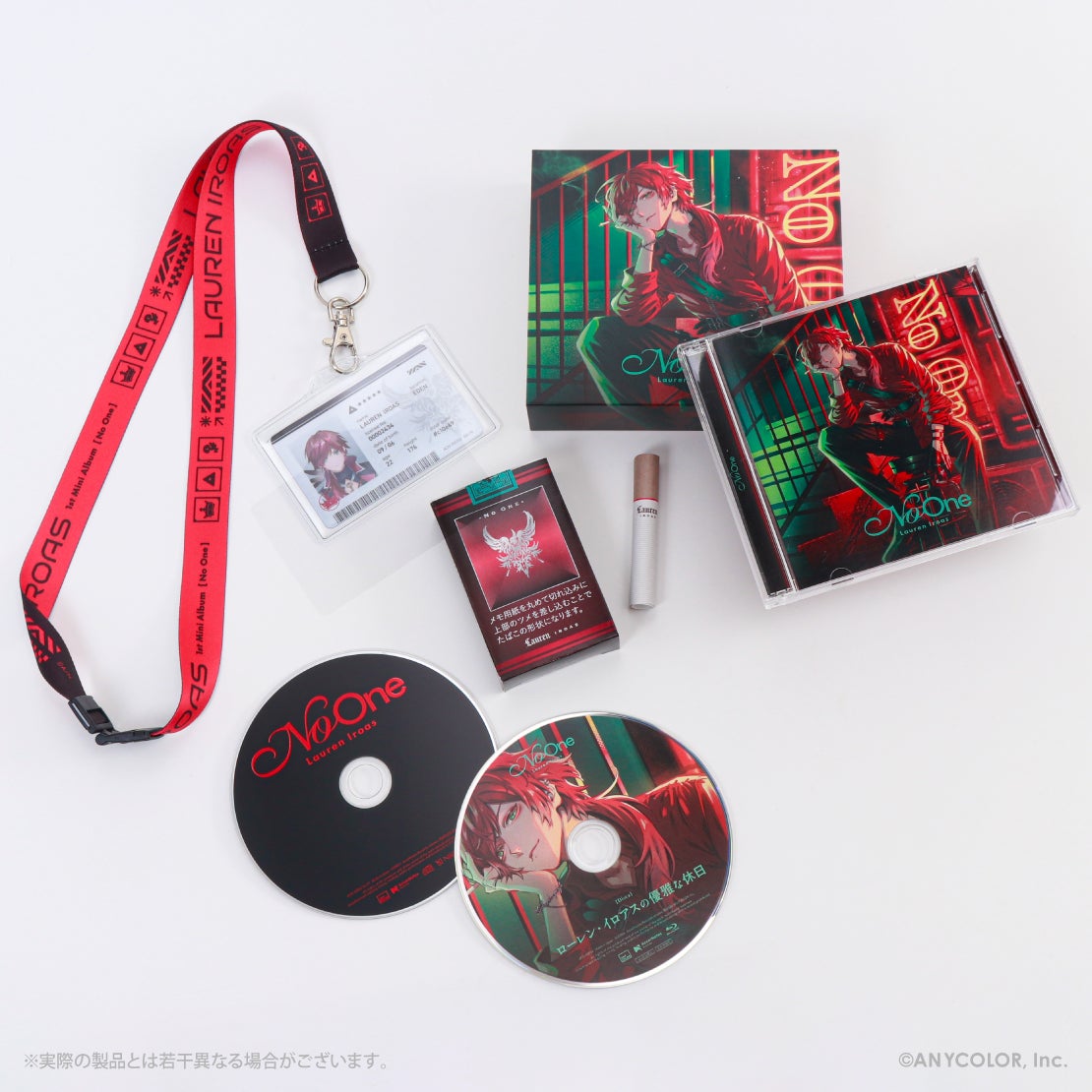 「No One」=「一つの顔ではない」をコンセプトに、ローレン・イロアスの多面的な世界と表情を描いた全5曲を収録。初回生産限定盤Aには、タバコ風ボックスメモ帳、警備部隊ライセンス風カード、ネックストラップ(ケース付)と、ロケ企画『ローレン・イロアスの優雅な休日』を収録した特典Blu-rayを同梱。初回生産限定盤Bにはカバー3曲を収録した特典CDを。さらに3形態共通封入特典(初回生産分)として、ローレン・イロアス 1st LIVE “FACE” チケット先行抽選シリアルコードを封入。
