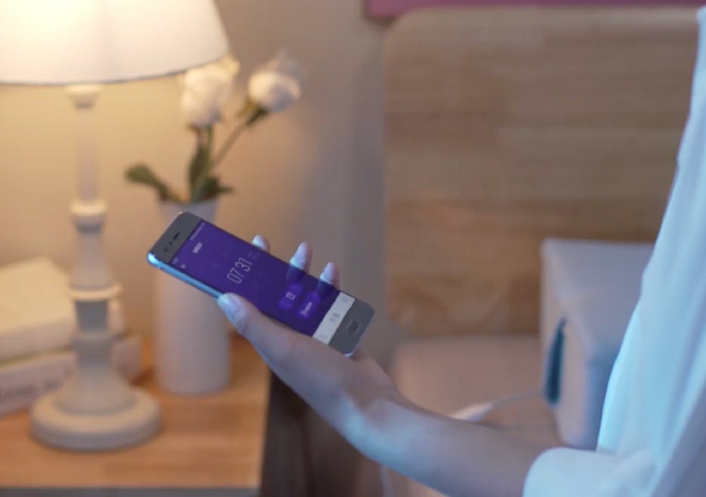 iPhoneからアプリ操作して、音楽やタイマー、目覚ましを設定可能。iOS、Android対応