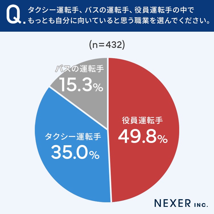 ■もっとも自分に向いていると思うのは「役員運転手」が49.8%で最多