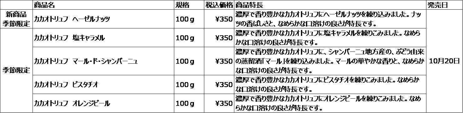 10/20(金)カカオトリュフに新味登場 季節限定発売のお知らせ