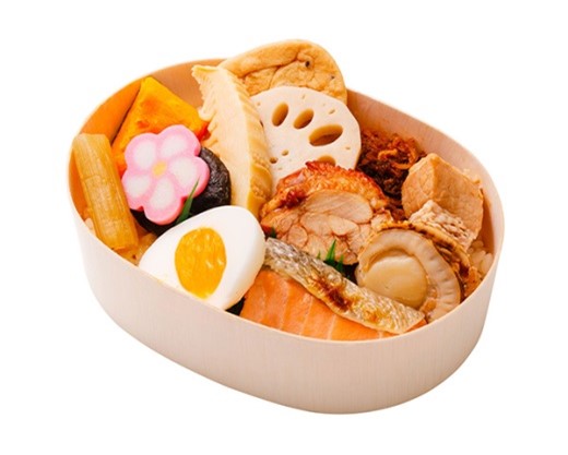 かつお節だしで炊き込んだご飯に10品以上のおかずを合わせた彩り豊かなお弁当です。