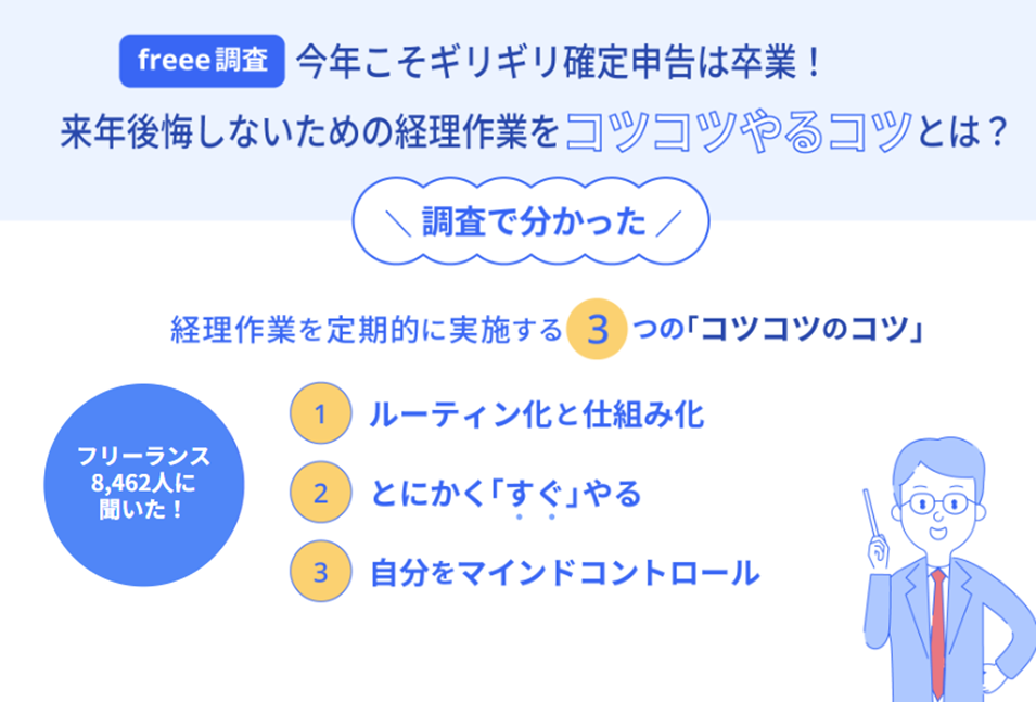 <freee調査>今年こそ「ギリギリ確定申告」は卒業!8,462人の個人事業主への調査で分かった「経理作業をコツコツやるコツ」