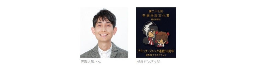 記念トークイベントには、「まことちゃん」「漂流教室」などで知られる特別賞の楳図かずおさん、楳図さんをリスペクトする芸人で新刊「マンガ ぼけ日和(びより)」を発表した漫画家の矢部太郎選考委員が登場。朝日新聞東京本社文化部の黒田健朗記者が進行役を務めます。来場者には、受賞者の描き下ろしやメッセージ、社外選考委員の選評などを収めた記念小冊子とオリジナル記念ピンバッジ(ブラック・ジャック&ピノコ)をセットでプレゼントします。