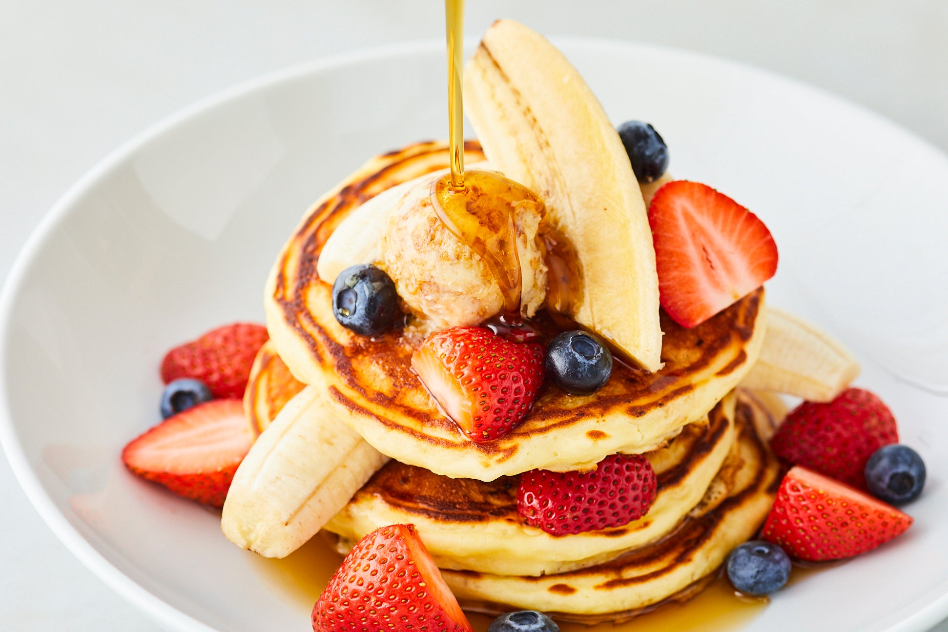 さらにクリームチーズベースのフルーツアイスと、さわやかな甘みのレモンカスタードを組み合わせ、初夏にぴったりのひんやり甘酸っぱいパンケーキに仕上げました。お好みで自家製のレモンティーシロップをかけてお召し上がりいただくことで、2つの味をお楽しみいただけます。