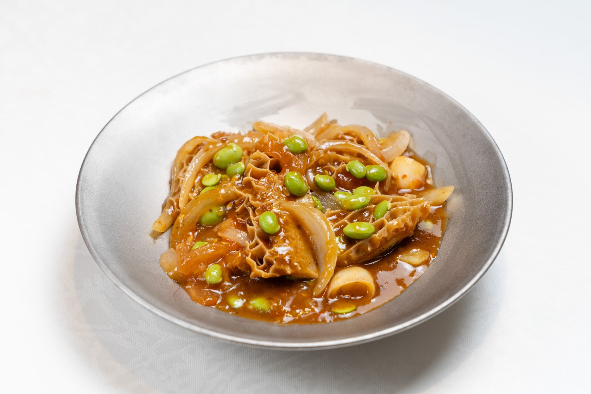 トリッパと東京産枝豆のトマト豆板醤煮込