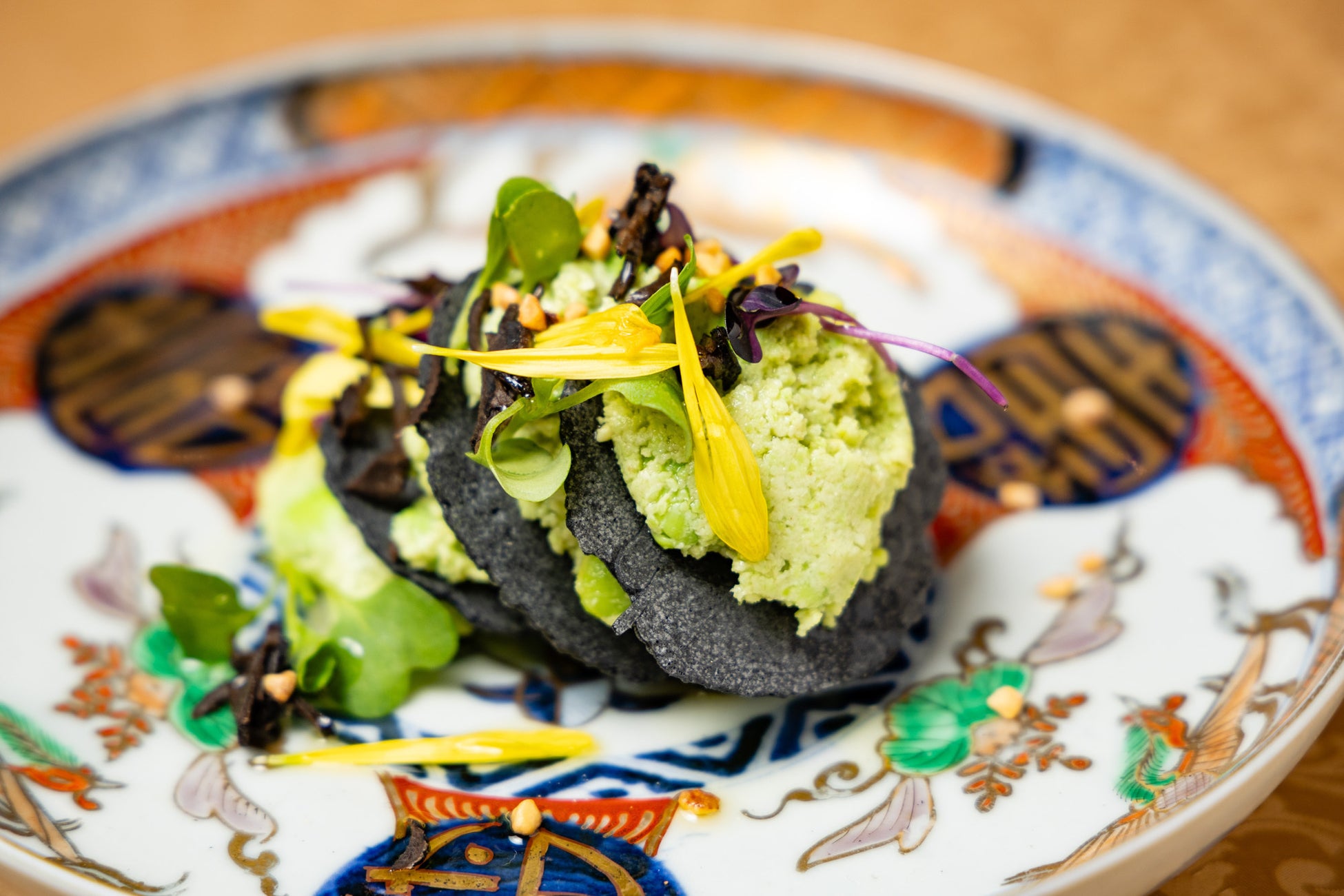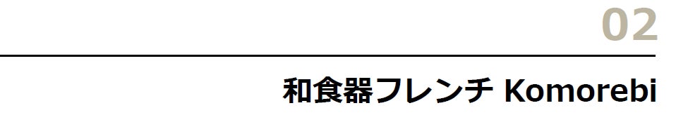 厳選食材をアンティーク和食器とフュージョンフレンチで楽しめる「和モダン」レストラン。鮮度抜群で旨味濃厚な厳選食材にこだわった、贅沢な正統派フランス料理のフードメニュー。明治や江戸時代の古伊万里や九谷焼などアンティーク和食器が料理を引き立て、リラックスしてお箸で楽しめるフレンチレストラン。