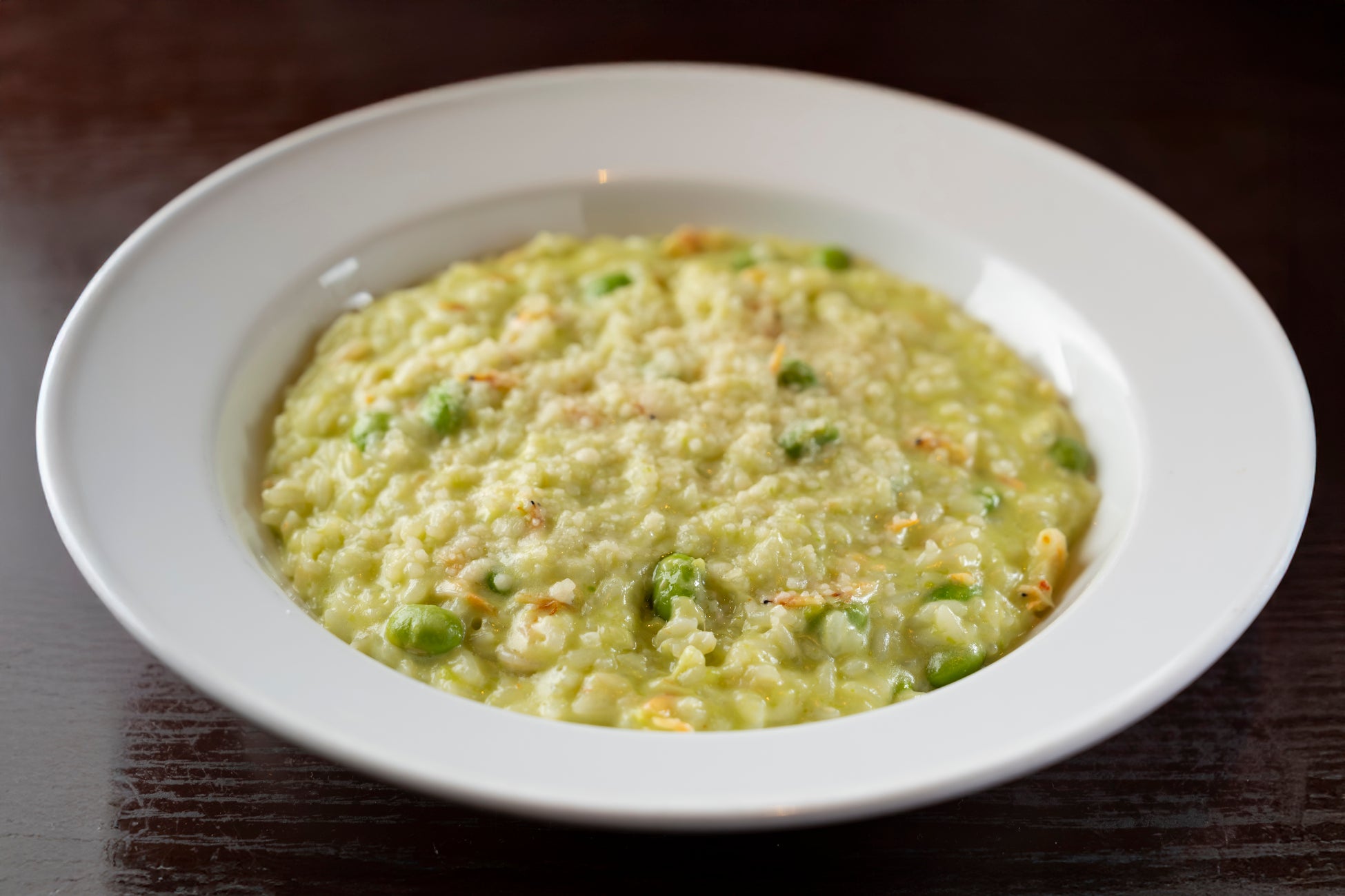 “産地”ならではの、枝豆をふんだんに使った大地の力強い味わいを感じるリゾット。