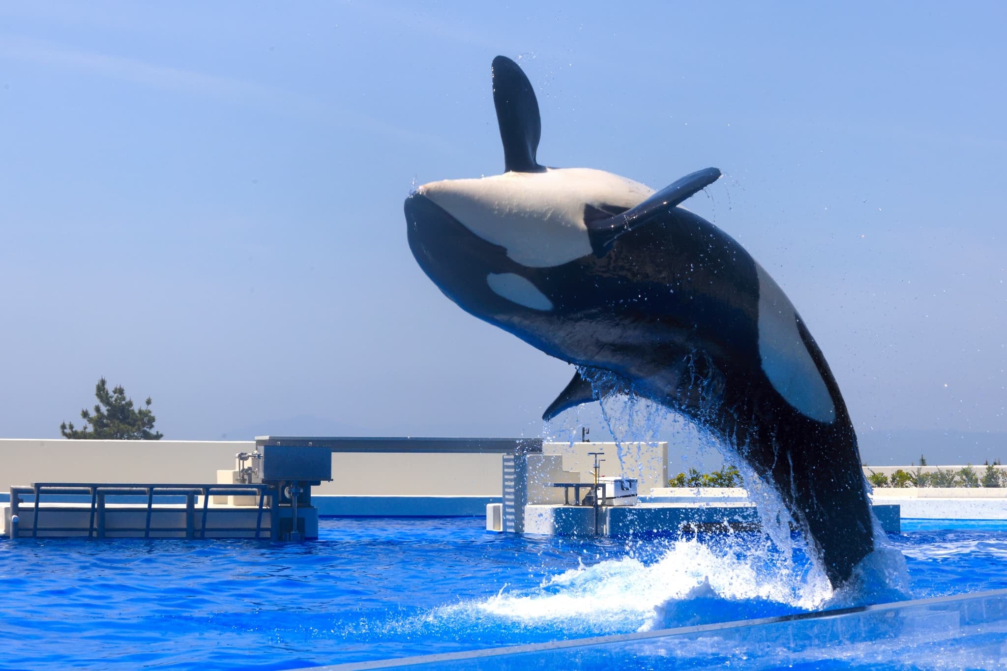 ・暑い夏を吹きとばす!シャチの水しぶき 「オルカパフォーマンス」(オルカスタディアム)