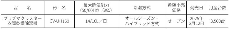 プラズマクラスター衣類乾燥除湿機「HYBRID365」<CV-UH160>を発売