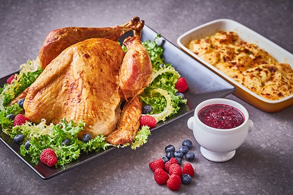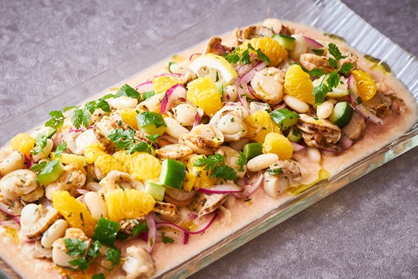 きらめくクリスマスにふさわしい、色鮮やかなお料理をご用意いたします。前菜の「帆立貝のカラマンシービネグルとタラモサラダ仕立て」は、帆立貝や野菜、オレンジを爽やかな味わいの柑橘酢でまとめました。マッシュポテトにたらこを合わせて仕上げた「タラモサラダ」と一緒にお召し上がりください。西洋料理では、クリスマスに欠かせない料理「ローストターキー」をご堪能いただけます。じっくり焼き上げた「ローストターキー」には、程よい甘みと酸味がアクセントになる「クランベリーソース」をかけてお楽しみください。中国料理では、豪快に殻ごと揚げたプリプリの海老の食感がクセになる「ガーリックシュリンプ」をご賞味ください。口の中に広がるガーリックの風味が食欲をそそる一品です。