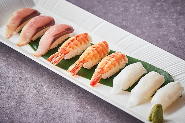 日本料理では、その時々のおすすめ素材3種類を握り寿司にしてご提供いたします。中国料理では、とろっとした食感のふかひれに合うよう仕上げた餡と中華麵の相性が抜群な「ふかひれ入りラーメン」をご提供いたします。