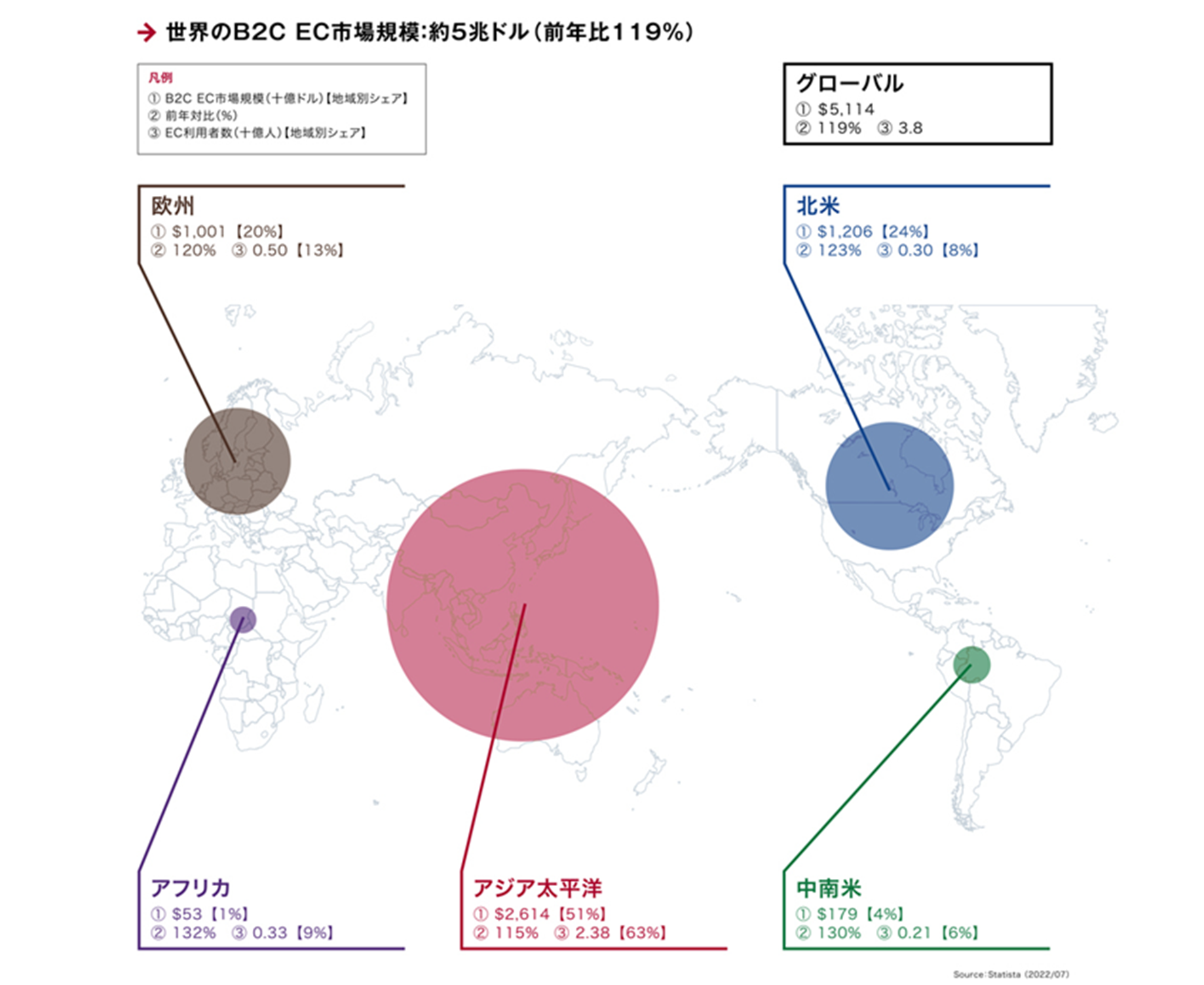 2021年の世界のB2C EC市場は前年比119%の5兆1,140億ドル 越境EC・海外EC市場の今がわかるデータ集