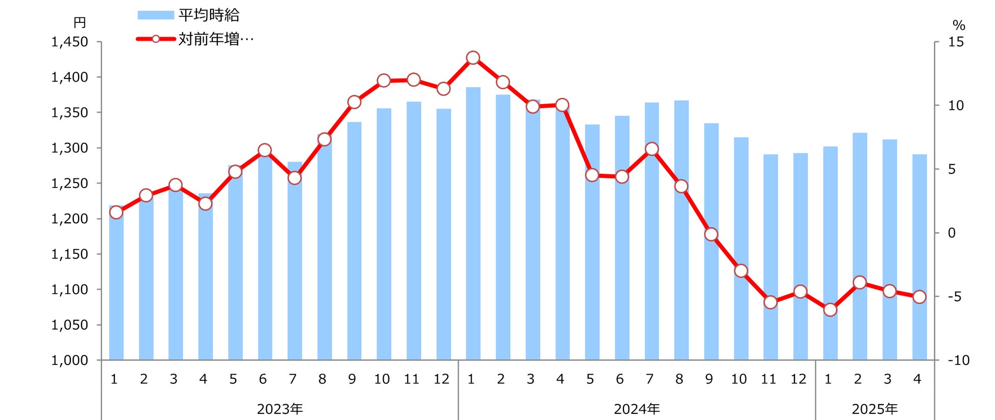 2025年4月度 アルバイト平均時給調査 全国の平均時給は1,219円