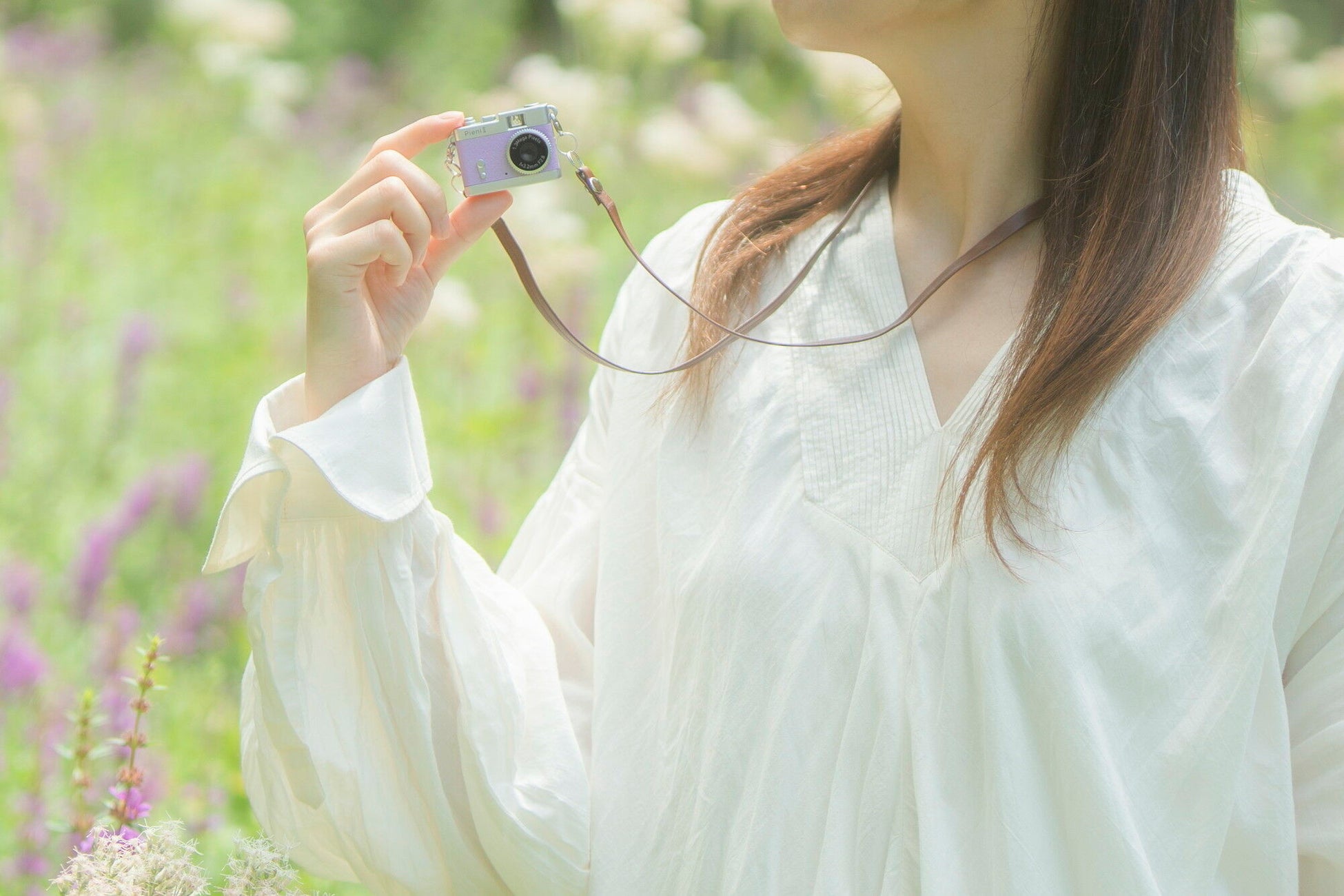ネックストラップ付で、アクセサリー感覚で持ち歩けます。