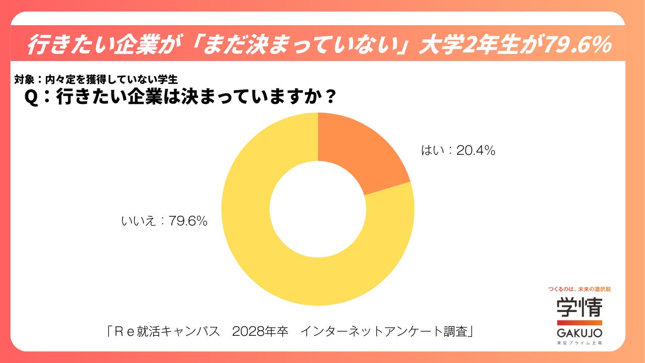 一方、「行きたい企業が決まっている」と回答した学生は20.4%にとどまり、「決まっていない」は79.6%でした。