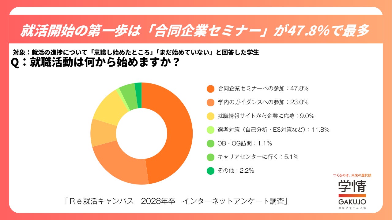 「意識し始めたところ」「まだ始めていない」と回答した学生では、「合同企業セミナーへの参加」が47.8%で最多となりました。
