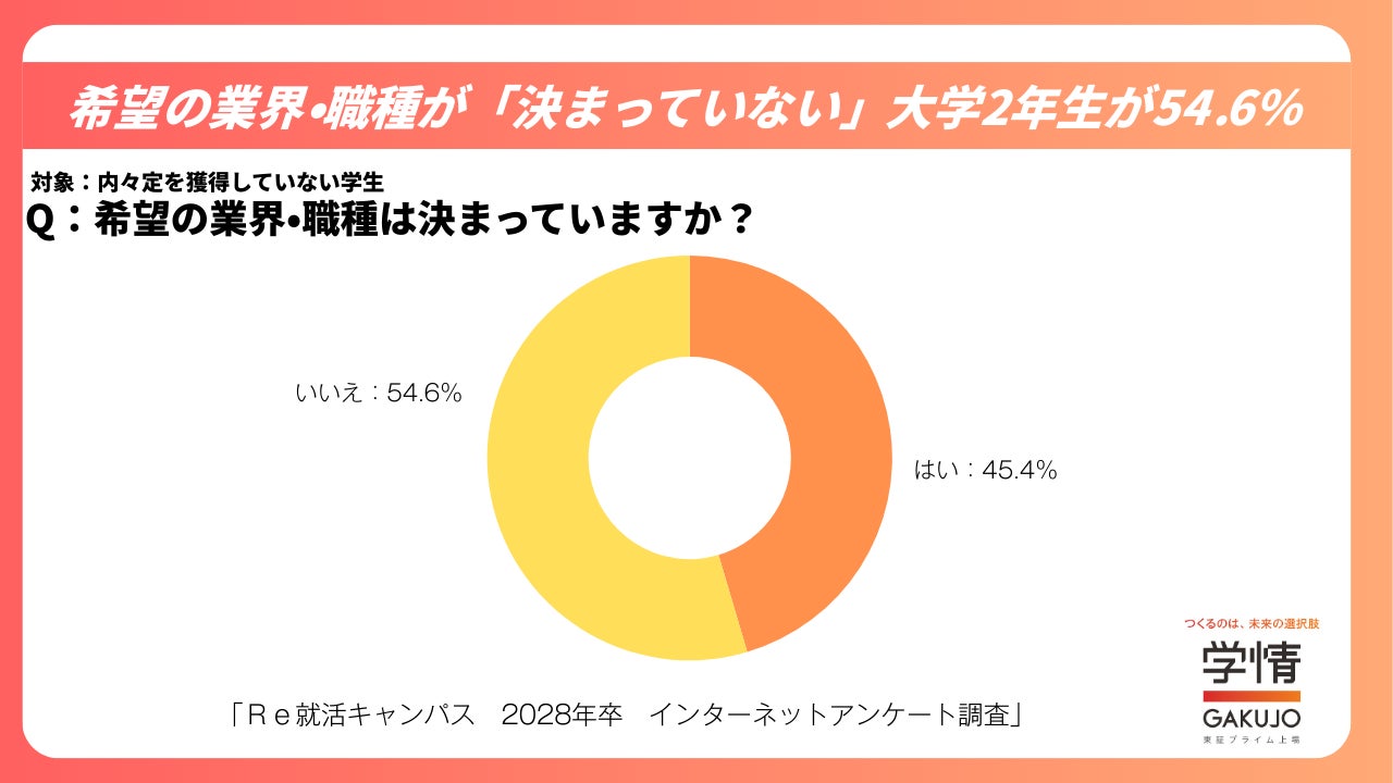 希望の業界・職種が「決まっている」と回答した学生は45.4%、「決まっていない」は54.6%となりました。