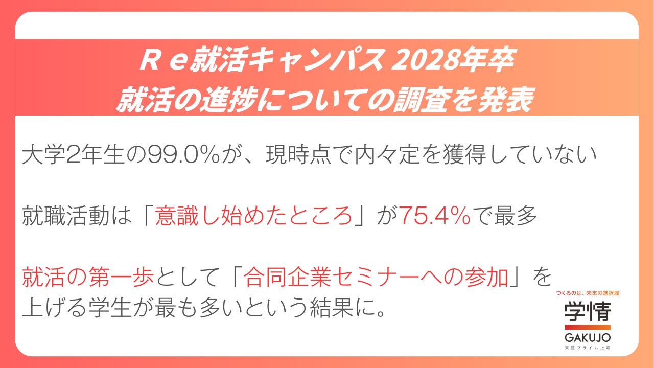 本調査では、2028年卒業予定の大学2年生を対象に、就職活動の進捗状況や意識、行動の起点についてインターネットアンケートを行っています。