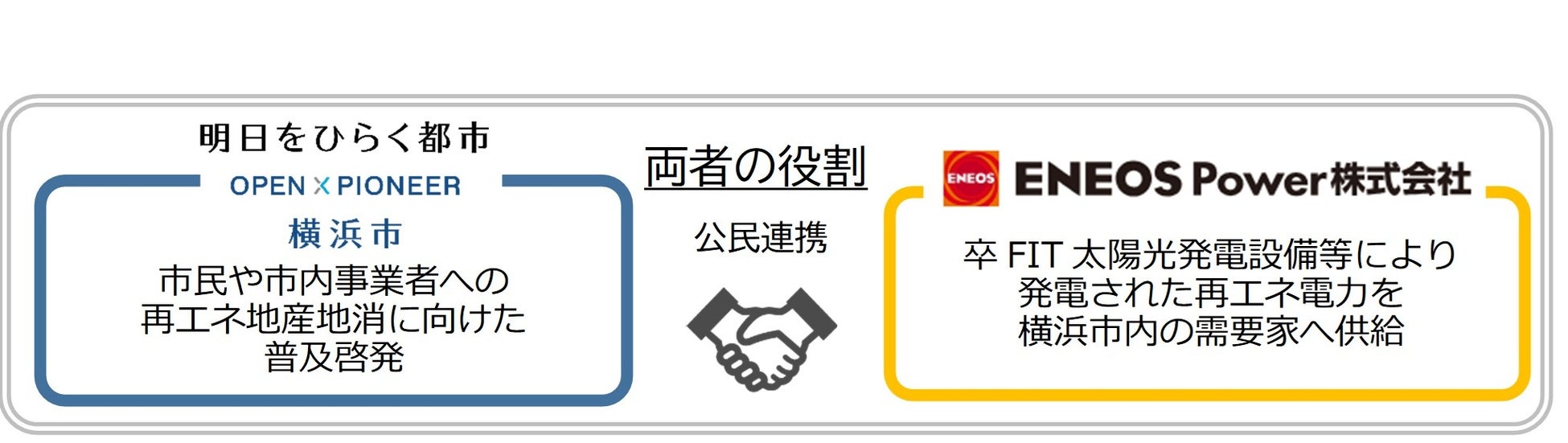 横浜市とENEOS Power株式会社は再生可能エネルギーの地産地消の取組推進に向けた連携協定を締結しました。その取組の一環として、市内のご家庭に設置されている太陽光発電設備の余剰電力を活用したオフサイトPPAでの電力供給をENEOS Power株式会社より開始します。