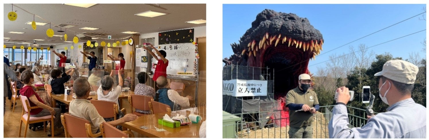 ▲(左)高齢者施設で実施した「よさこい踊り」