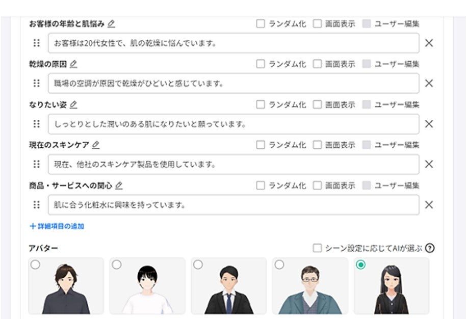 概要:人工知能を活用し、お客様とのロールプレイングを通じて、接客・応対スキルを実践的に学ぶ取り組みです。時間や場所にとらわれず繰り返し練習できる環境を整えるとともに、事前に設定した評価基準に基づくフィードバックにより、応対品質のばらつきを抑え、安定した育成を実現します。ファンケルが大切にしてきた価値観を反映した研修を通じて、「人に寄り添う応対」を次世代へと継承していきます。