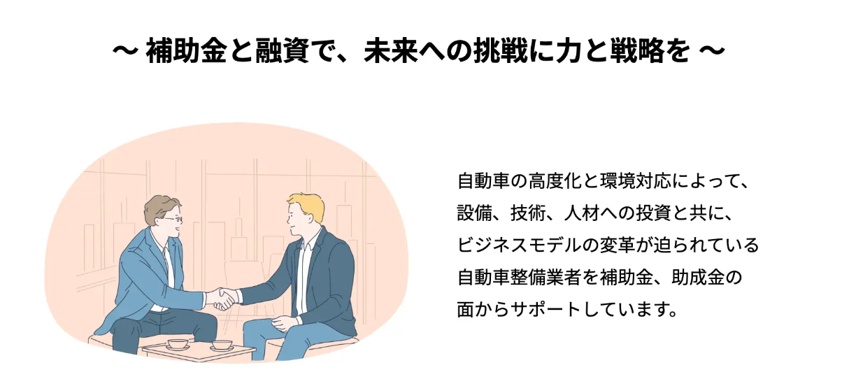 自動車業界の急速な進化と環境対応に伴うビジネスモデルの変化に直面する自動車整備工場や鈑金塗装工場に対して、設備、技術、人材への投資に関連する補助金申請のサポートを行っていますので、お気軽にご相談ください。