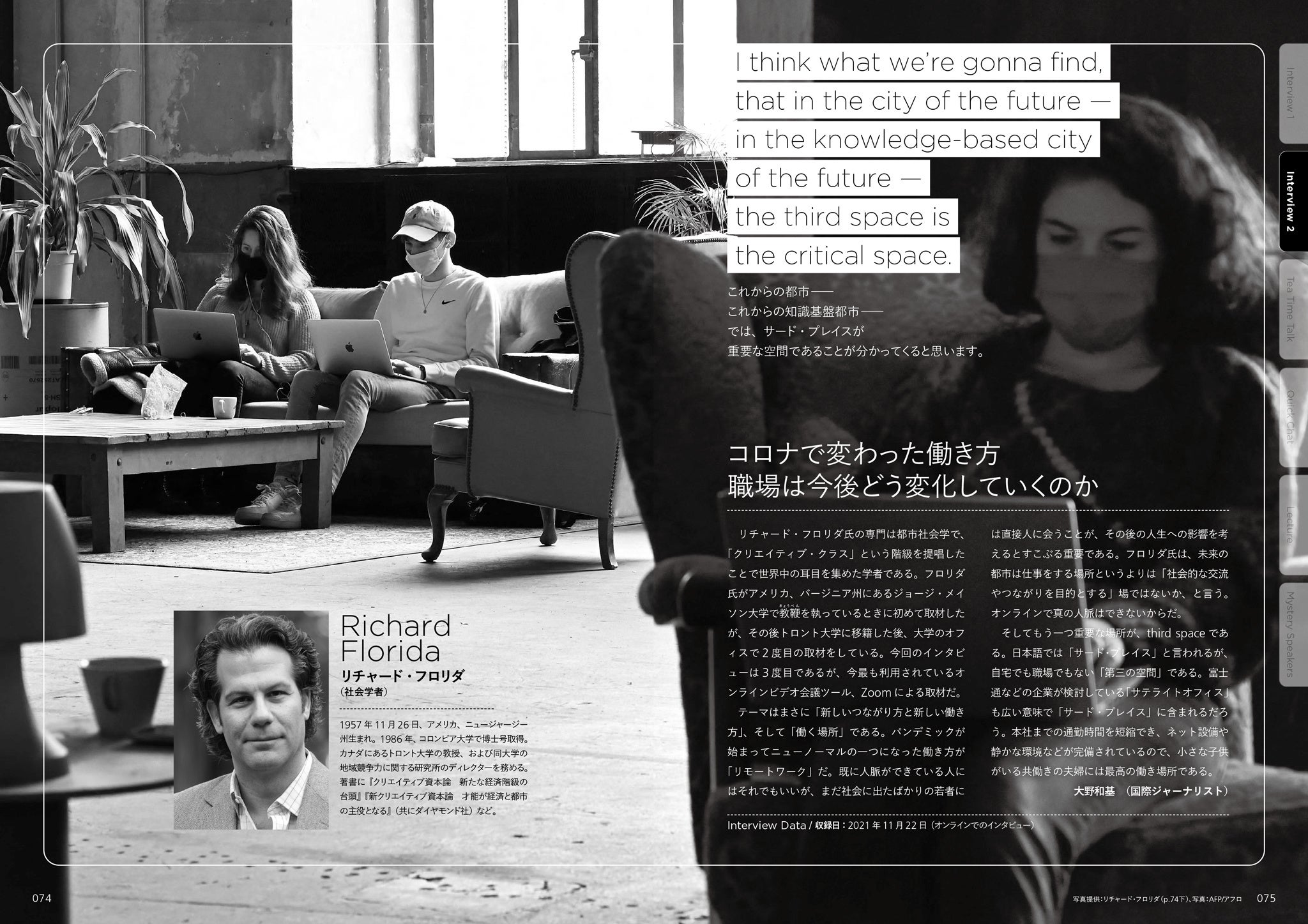アメリカの社会学者、リチャード・フロリダさんは、地域の発展と「クリエイティブ・クラス」という新たな階級の台頭に関する研究を行っています。著書の『クリエイティブ資本論』は世界的ベストセラーとなりました。インタビューでは、パンデミックで在宅勤務が増えた中、今後従来のオフィス勤務に戻ることはあるのか、「サード・プレイス」とは何か、そして今後求められる職場環境などについて話しています。