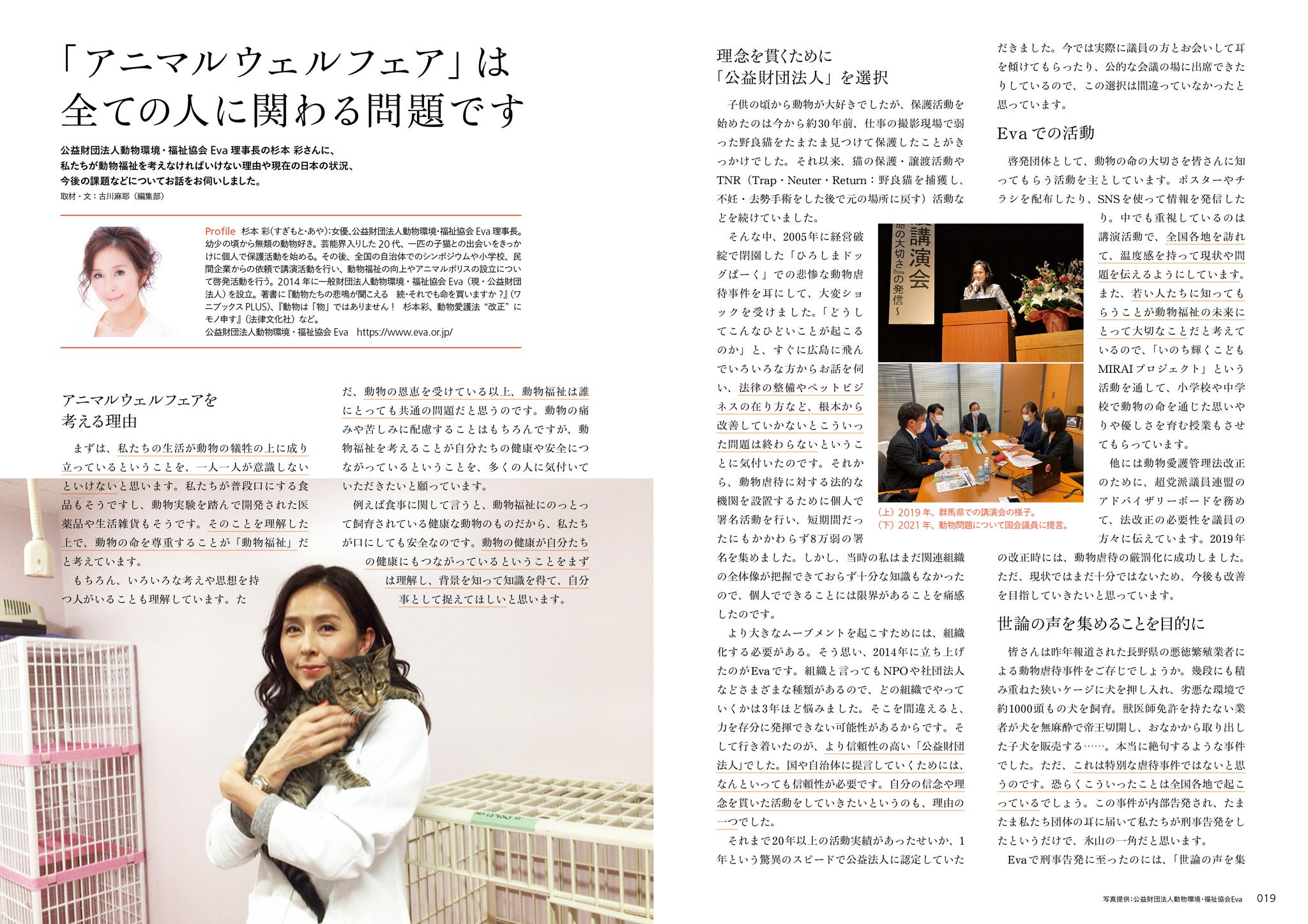 世界で動物保護活動が活発化する中、日本でも動物や環境に配慮した「エシカル」な行動を意識する人や企業が増えています。しかし、依然として日本は「アニマルウェルフェア(動物福祉)」後進国だと言われているのも事実です。日本の常識が、世界では非常識になっているかもしれません。本特集では、公益財団法人動物環境・福祉協会Eva理事長の杉本 彩さんへのインタビューや、世界の動物福祉とペット事情、そして今気になるヴィーガンについて紹介します。