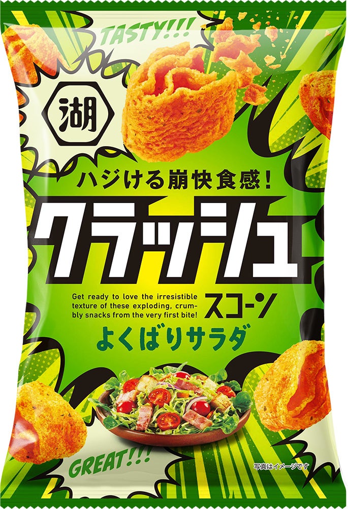 【ココロもハジける、超快感食感スナック!】ザクザクハジけておいしさ広がる、やみつきになる新スコーン&新カラムーチョ「クラッシュスコーン よくばりサラダ」「クラッシュカラムーチョ ホットチリ味」新発売