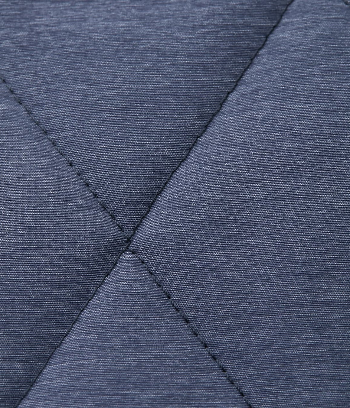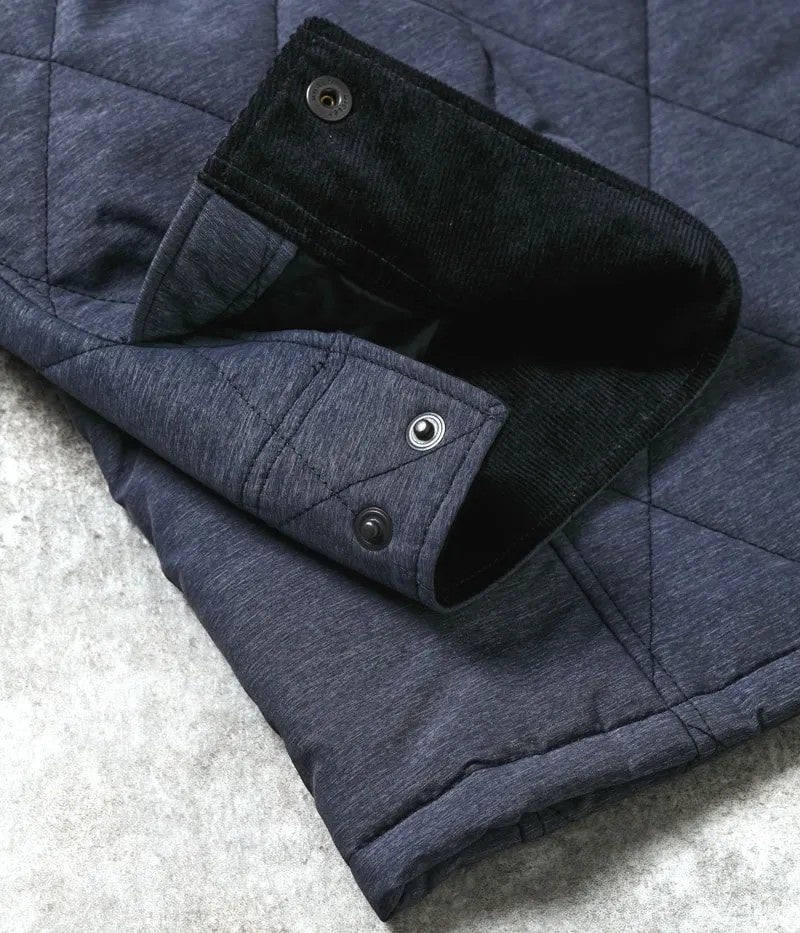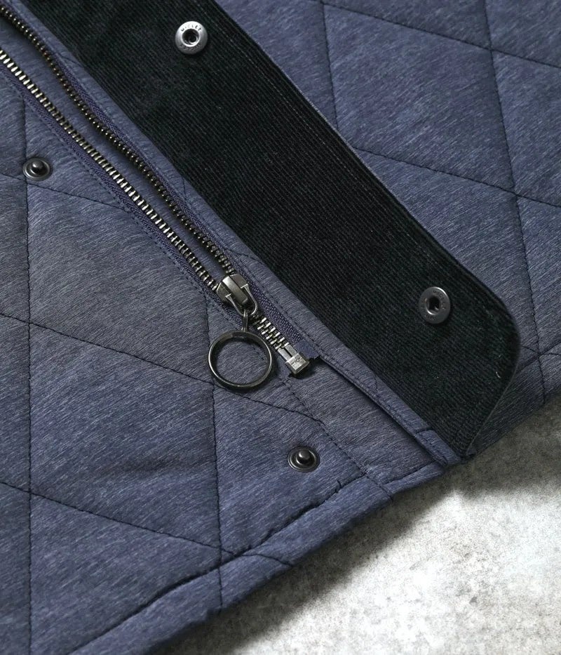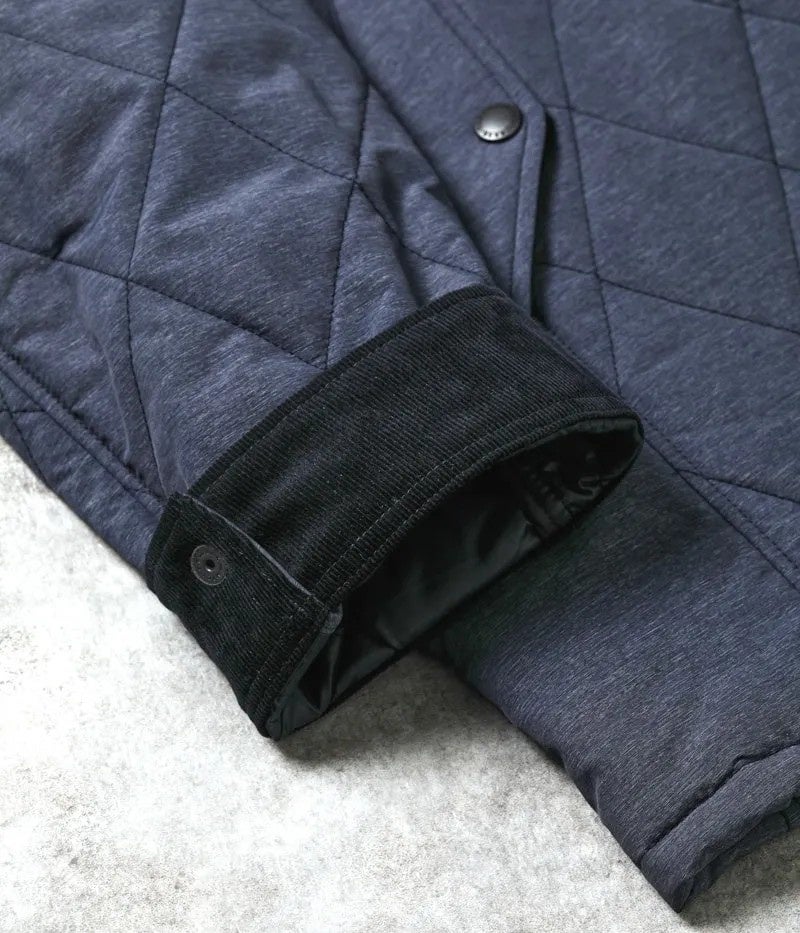ナイロン×ポリエステルを使用したオリジナル生地です。合繊素材では珍しい、メランジ(杢)と呼ばれる霜降り調が特徴です。無地の合繊素材だと平坦な印象もありますが、“メランジが表面を立体的に見せてくれる”ので高級感があります。いろいろなブランドがキルティングアウターを販売していますが、他とは一味違う見た目なんです。昨年も同様の生地を使用していたんですが、好評でシーズン中に完売しました。今年は2色にバリエーションを増やし、さらにパワーアップしています。