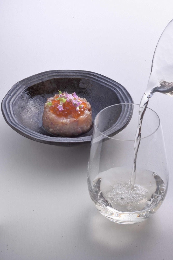 日本酒とイタリアンのマリアージュを提案する『サリーヒルズ』(代官山)の「アジのタルタル」。店主兼料理人の小谷野大輔さんに作り方を教えていただいた。アジの旨みとイクラ醤油漬けのコク。そこにオリーブオイルの風味が加わり舌に旨さが迫ってきます。微発泡の酒を合わせるのがおすすめです。