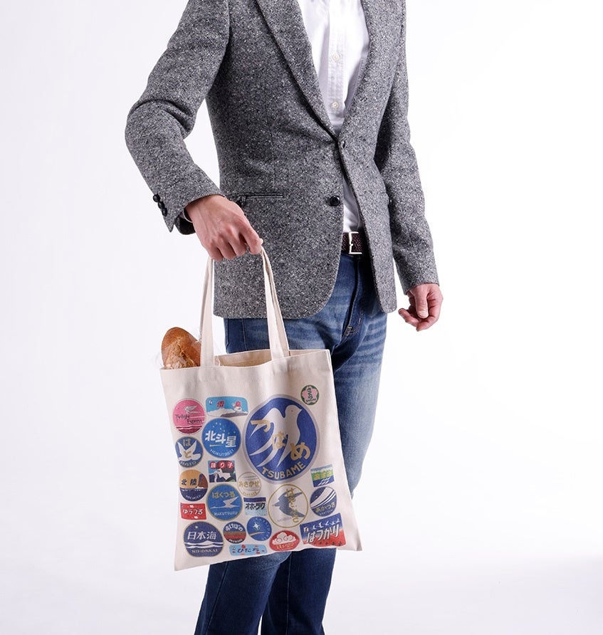 丈夫な綿混紡生地のトートバッグの持ち手を除くサイズは、縦約35×横約33cm。ちょっとした買い物や普段使いにちょうどいい大きさです。