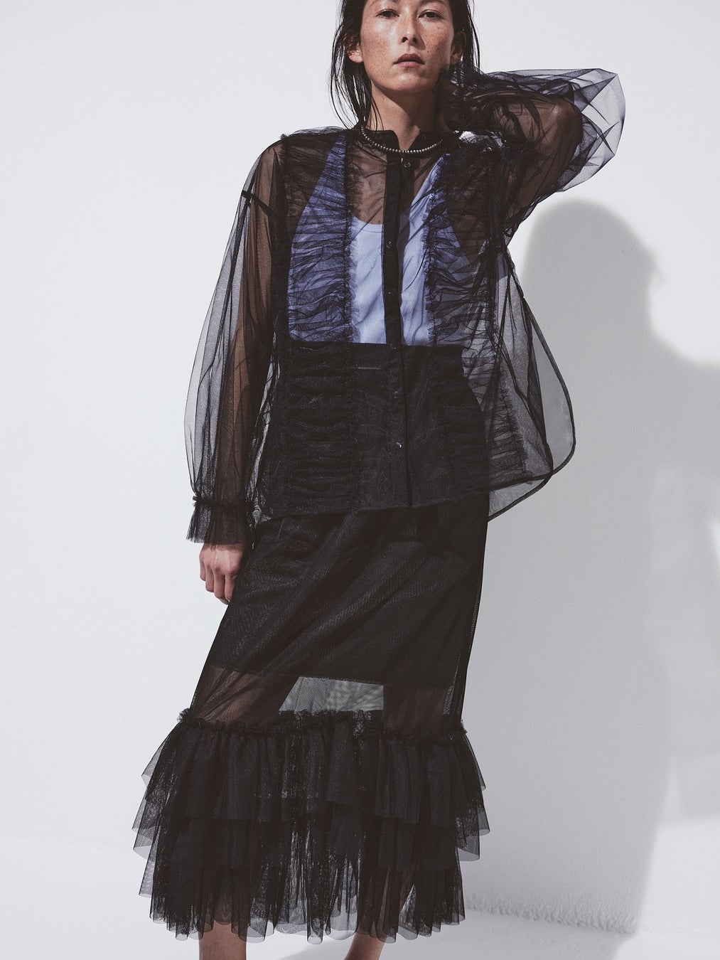 長尾氏が今シーズン注目しているという"チュール"をキー素材に、決して甘くない大人の女性だからこそ完成したバランス感が魅力の、こだわりが詰まったアイテム全4型がオンラインストア限定で先行予約スタートいたします。