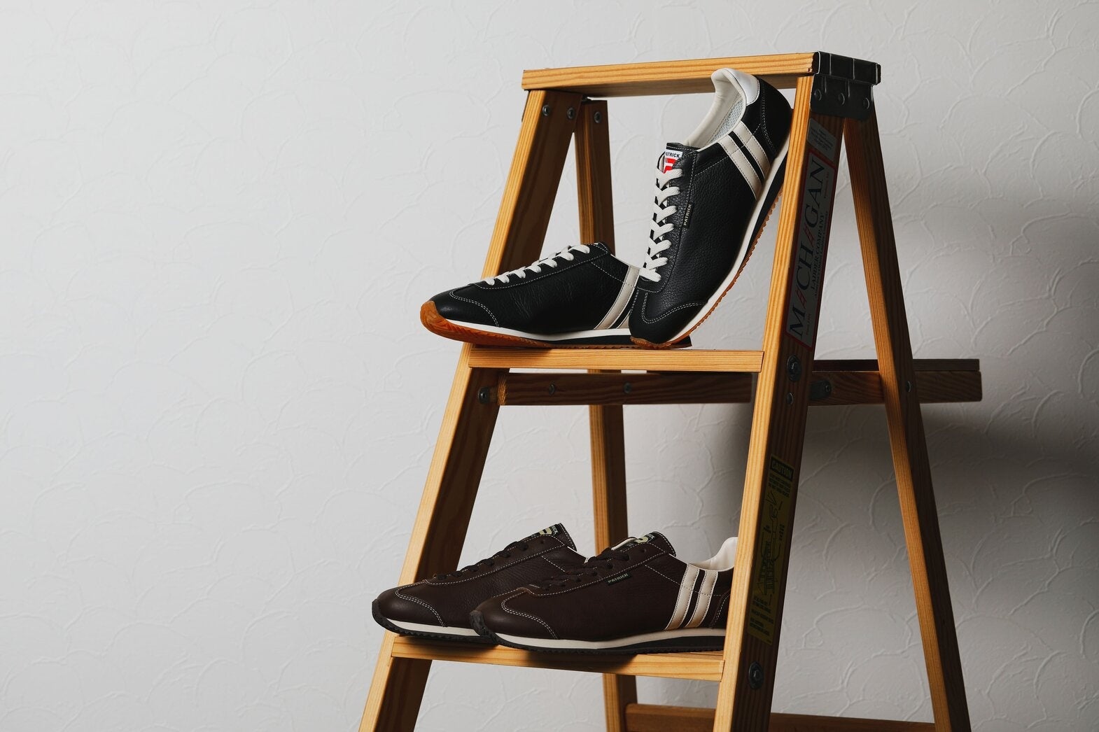 PATRICKの定番モデル「NEVADAⅡ」。シンプルで上品なデザインと、柔らかなレザーが生む快適な履き心地が魅力。履くほどに足に馴染み、風合いを増していく“育てるスニーカー”です。